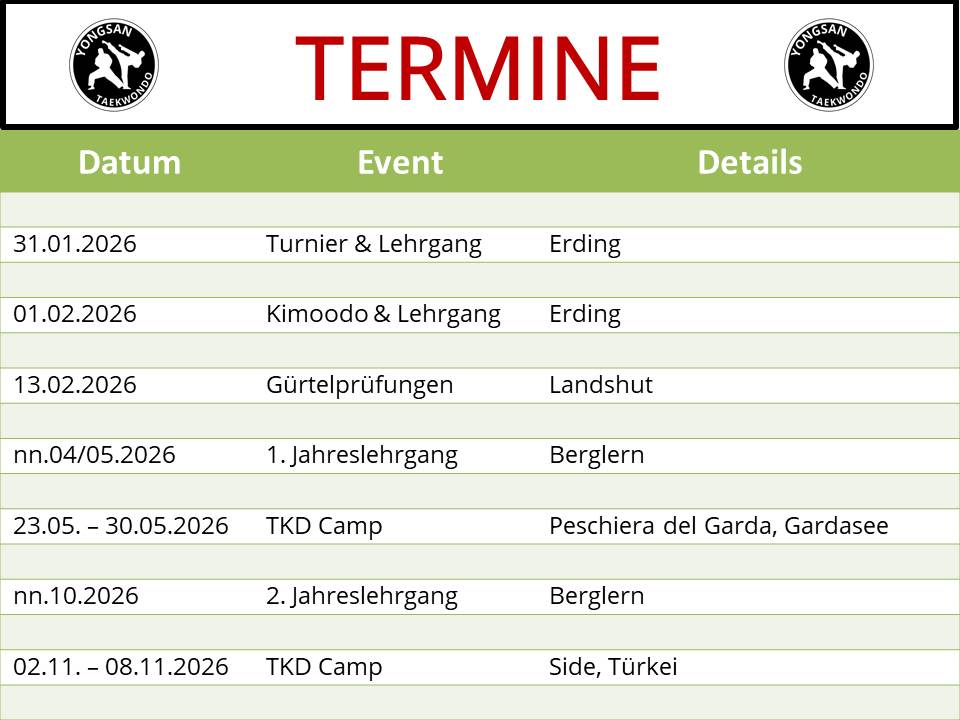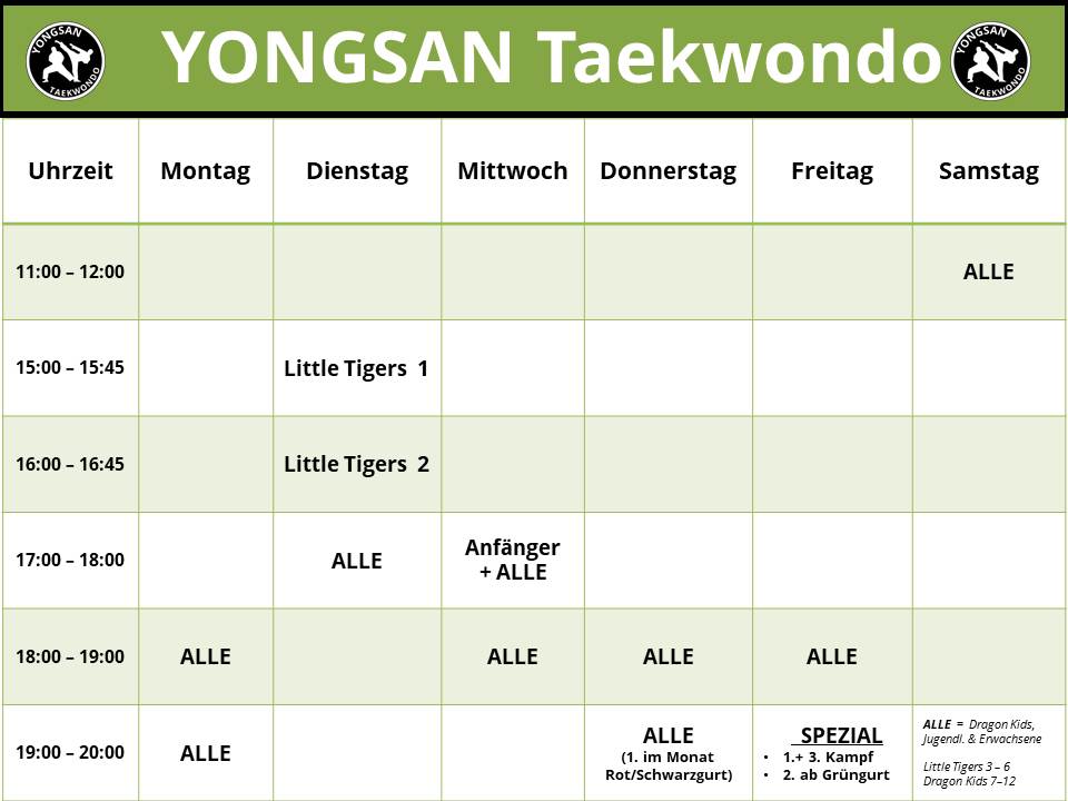 An Sonn- und Feiertagen findet kein Training statt!
